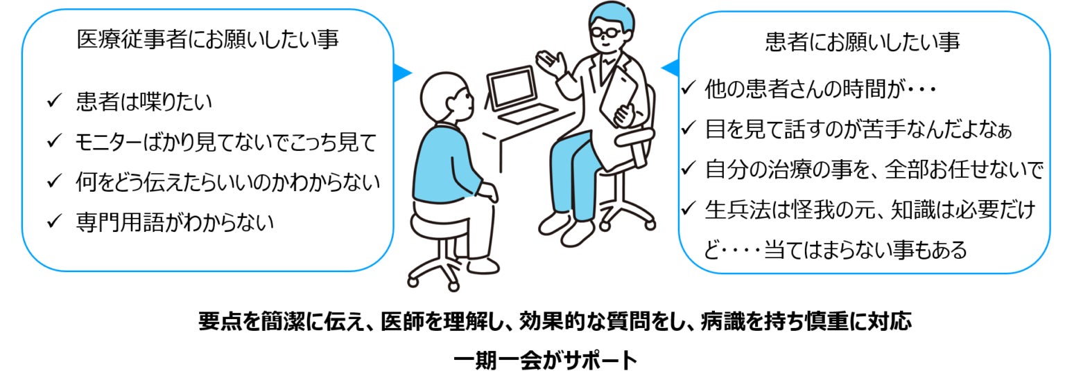 医療者・患者の意見を理解し、どう折り合い落としどころを見つけていくのか?そこを解決するのが一期一会の存在意義となります。
